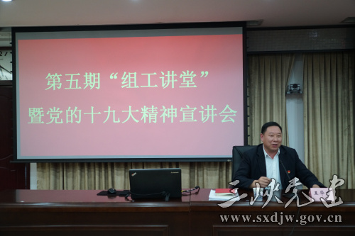 11月16日,市委组织部举办第五期“组工讲堂”暨党的十九大精神宣讲会。市委组织部、市委老干部局全体机关干部参加会议。