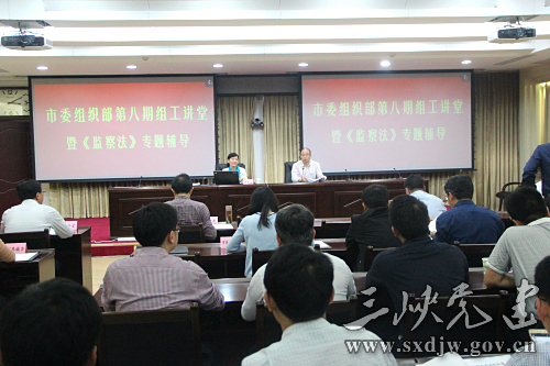 5月22日下午,市委组织部举办第八期“组工讲堂”暨《监察法》专题辅导。市委组织部常务副部长肖高沛主持学习活动。市委组织部、市委编办、市委老干部局全体机关干部参加学习。